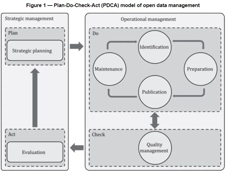 Chapter 4 of the ISO 37110 standard introduces the purpose and characteristics of open data, while Chapter 5 presents the general management model, strategic management, and operational management model.